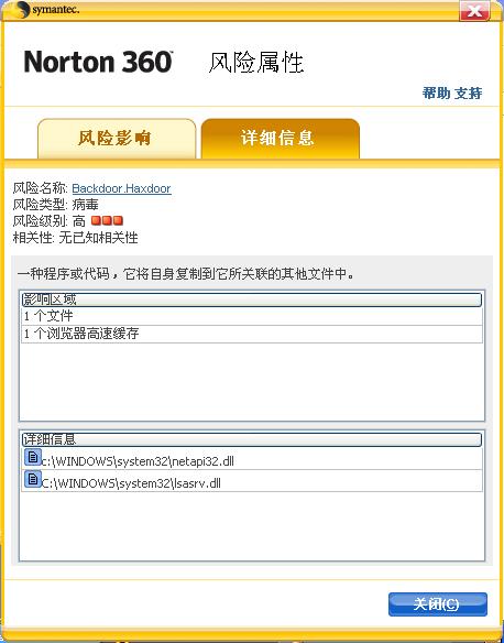 瑞星安全专家表示,安装了MS06-070补丁的XP系统,如果将诺顿升级最新病毒库,则诺顿杀毒软件会把系统文件netapi32.dll、lsasrv.dll隔离清除,从而造成系统崩溃。由于国外品牌的笔记本和台式机多数预装了Windows XP系统和诺顿杀毒软件,这些用户极其容易遭到此次“误杀”攻击,因此中国大陆地区将有数百万台电脑面临崩溃的危险。由于该次误杀只发生在简体中文版的XP系统上,因此对国外用户几乎没有影响。
