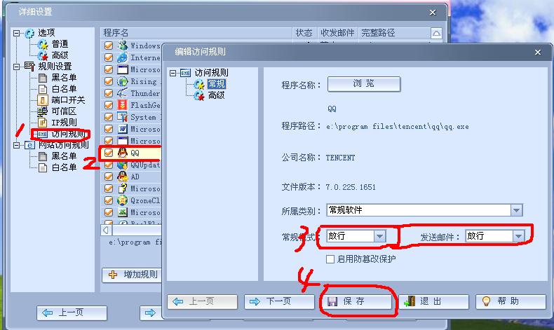 双击瑞星防火墙--设置--详细设置,然后看图: