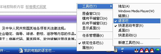 我的电脑的语言栏让我设成隐藏了请告诉我怎样才能找到它呀