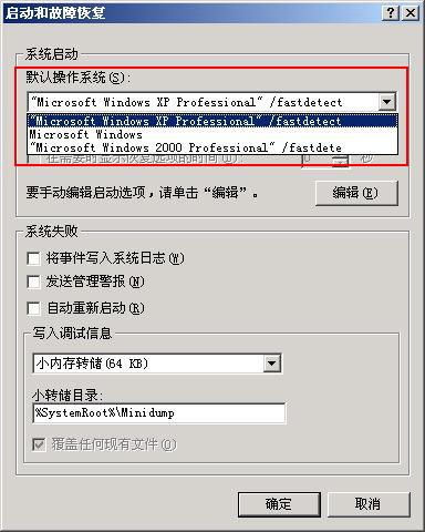 我的电脑--右键--属性--高级--启动和故障恢复--设置