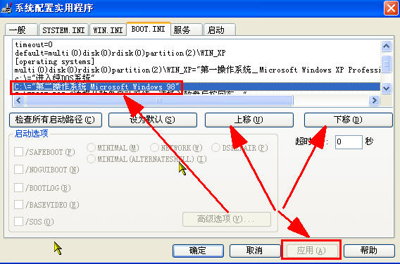 我安装了两个操作系统:win98和winxp,工作需要两个系统,开机启动菜单上是winxp在前,我想让win98在前,有何办法呀?
