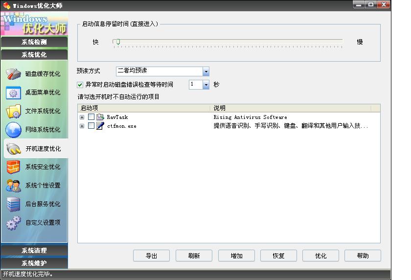 图二是用优化大师加载启动项的窗口.点增加出现图三的窗口.(原不用优化大师也可以,不过有些菜鸟不懂注册表,所以用比较简单的工具代劳).