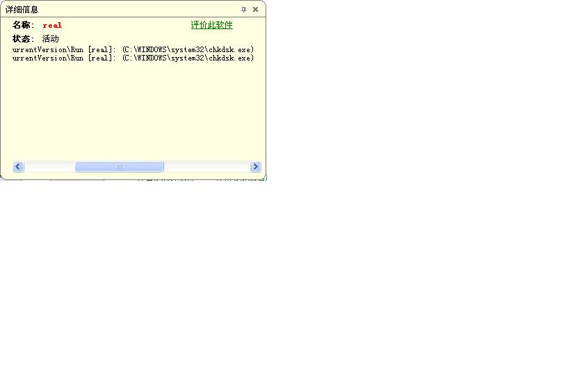 图一是我没有加载名称为real的启动项,检测为没有木马.