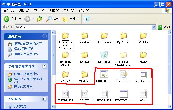 如果是XP安装双份在同一个驱动器上,估计你机上有双份的操作系统文件(如WINDOWS文件夹等等),但安装目录不同或文件夹名称不同。纯手工删除多余的一份太麻烦,而且容易删除不该删除的DD(如下图红框中的那些隐藏文件),造成系统登陆不能。因此建议重新用操作系统安装光盘格式化C盘后安装。