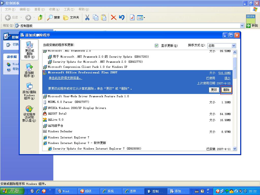 怎样删除office2007?