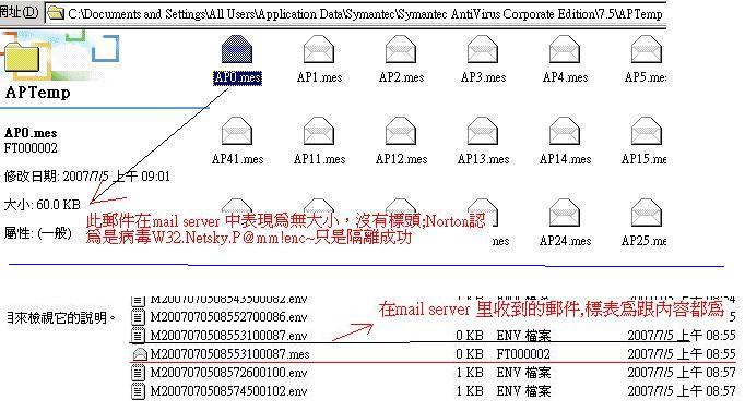 Mail Server一直接受一个病毒Mail, 经Norton扫毒后为:W32.Netsky.P@mm!enc, 动作为,隔离成功; 但是此病毒一直进我们的Mail Server真是头痛, 有没有方法找出根源;( 毒病的来源?处理的方法?) 我们用的是symantec Antivirus for smtp gateways: