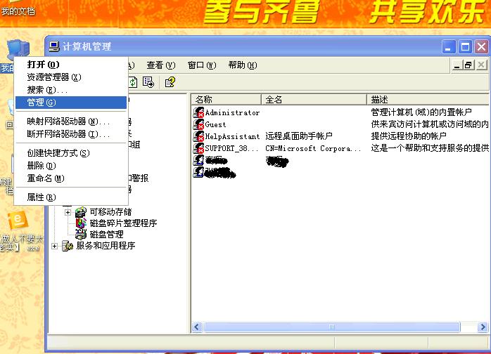 【侠客行难的贴子】在我得电脑上右键--选管理