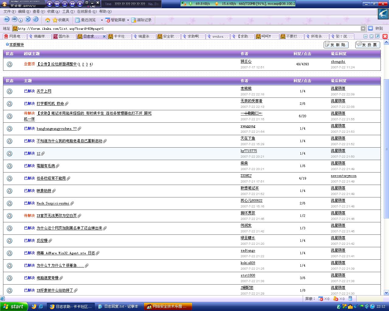 可是,无论你什么时候去那里,见到的总是“全国山河一片红”---刺眼、醒目的“待解决”,即用户发上来的求助日志基本上没人理!少数已转化成兰色的“已解决”的求助帖,也不过是那里的部分版主唯一的一篇回帖而已。而这唯一的回帖,不是要用户打包把病毒样本馈赠给瑞星,就是说帖子上没见病毒。至于用户求助的问题解决与否,几乎慨无下文。
