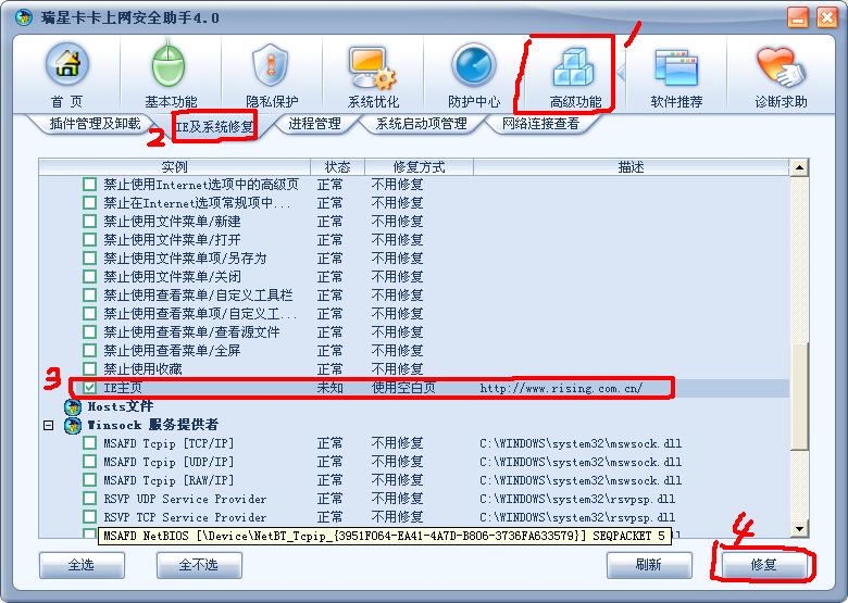 先用卡卡按照下图的步骤尝试修复下,如果不能,请发个SRENG日志。