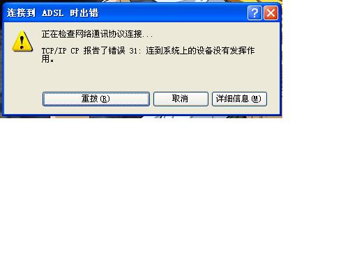 ADSL报错TCP/IP CP 31请高手指点!