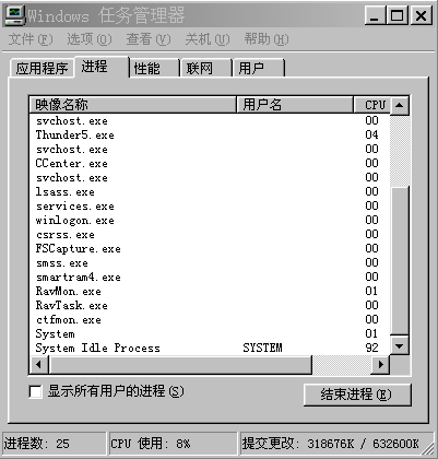 除了System Idle process 外都不顯用戶名,怎麽解决!