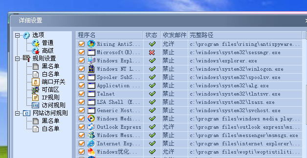 瑞星防火墙默认通过的东东是瑞星的部分组件