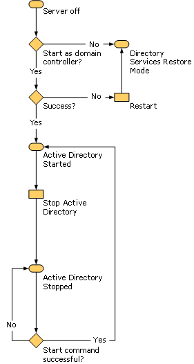 下面的流程图展示了运行Windows Server 2008的域控制器如何在这三种状态间进行变化。