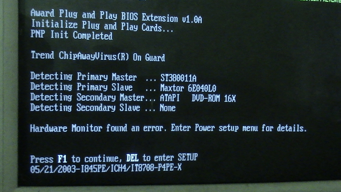 P4PE-X,下面一条是提示你,点F1进系统,点DEL进DOS,不点就进入默认