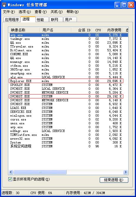 感觉进程占的内存都很大,如果刚启动xp什么都没启动也用了250多MB(底下显示那里)