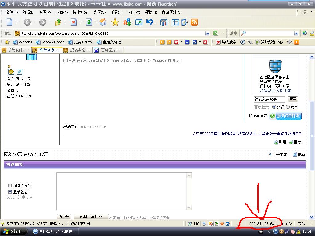 这样看到的IP是自己的,还是输入"www.ikaka.com "这个网址的?