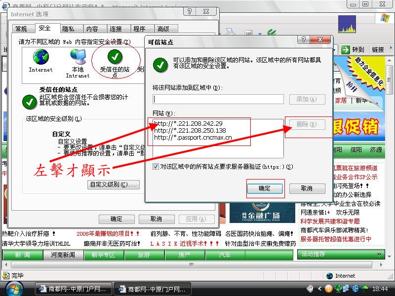 找一下是否有这“"Security_zones_map_edit"=dword:00000001”个键值?它的启的作用就是(禁止所有用户添加或删除安全区域中的站点)如果有将删除或修改为“"Security_zones_map_edit"=dword:00000000”然后重新启动一次系统再看看你发的图中的“删除”按钮是改变过来了?