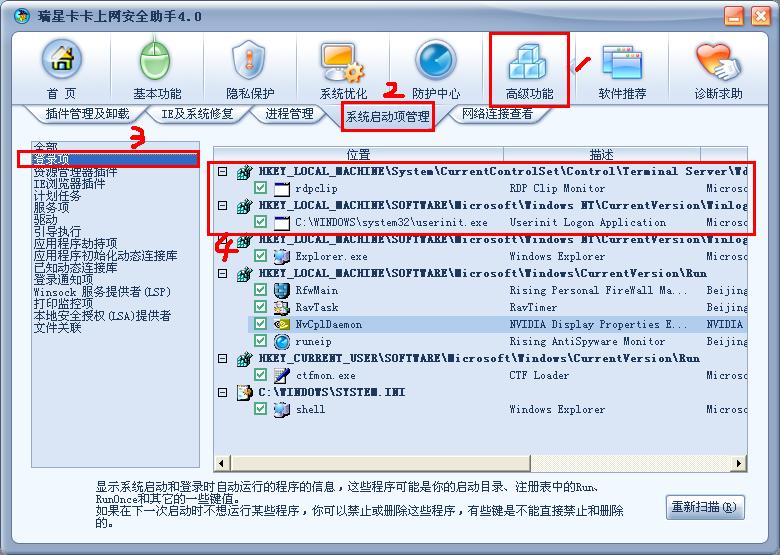 找到HKEY_LOCAL_MACHINE\SOFTWARE\Microsoft\Windows NT\CurrentVersion\Winlogon键下的Userinit字符串