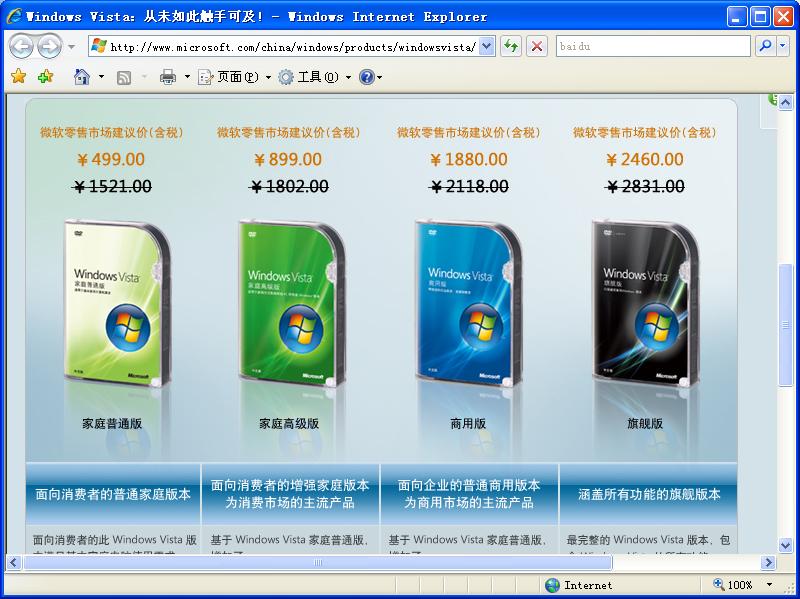 Windows Vista 零售盒装产品为已具备升级条件和迫切想升级到 Windows Vista 的电脑用户带来令人动心的价格!
