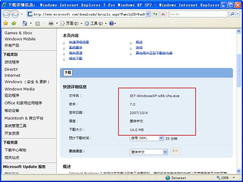 http://download.microsoft.com/download/4/1/8/418981a4-6ef9-4de6-befc-1a53e886cb62/IE7-WindowsXP-x86-chs.exe