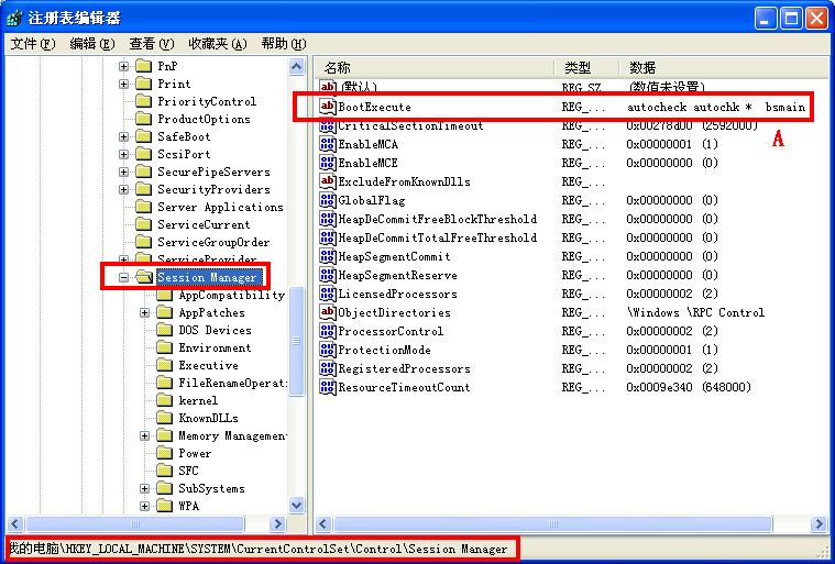 把注册表 \HKEY_LOCAL_MACHINE\SYSTEM\CurrentControlSet\Control\Session Manager 下的 BootExecute 里面的信息改成