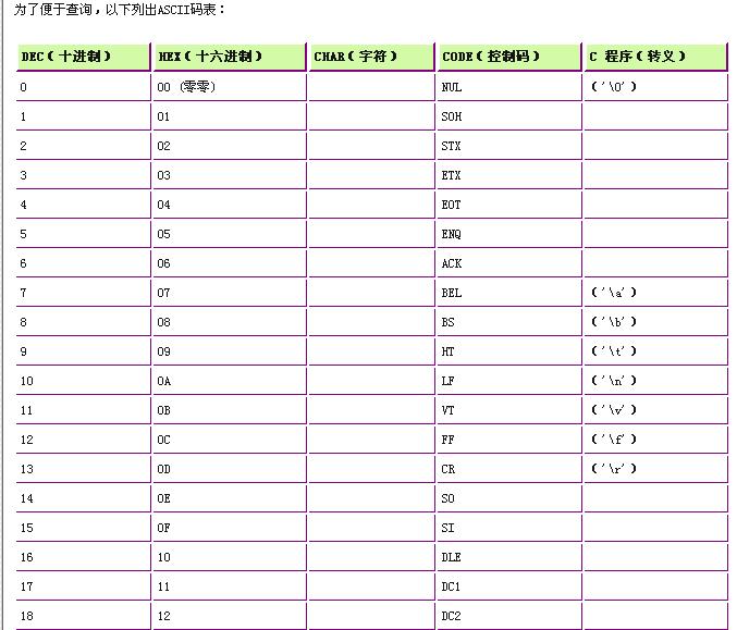 下面这个ASCii码转换表怎么看啊,我没学过C,看不懂啊,哪位大侠帮讲解一下,谢谢!