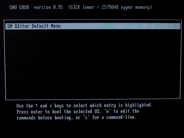 GNU  GRUB  version 0.95  (632K  lower / 257984K upper  memory)