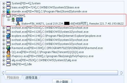 用瑞星看到的奇怪的网络连接