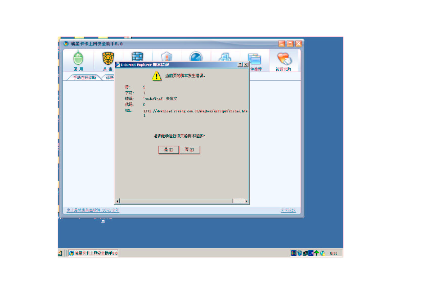 在上网时随机出现Internet Explorer脚本错误,导致网业关闭!例如卡卡时也出现!