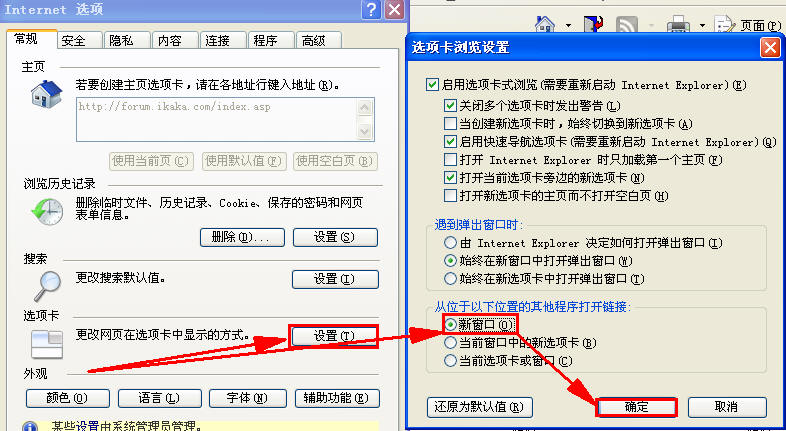 我一直都用IE6的,现在升级了,变成IE7。让我很不习惯的是IE7打开网页是卡片形式的,往往都一不小心就把所有链接都关掉了。请问各位,怎么设置才能让浏览器一个链接用一个窗口?