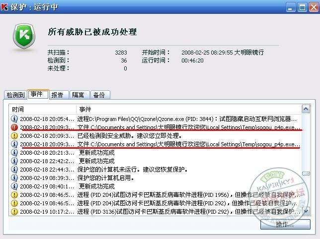 在2月19号之前,强悍的卡巴斯基能很好的防御SOHU这种不道德的行为,
