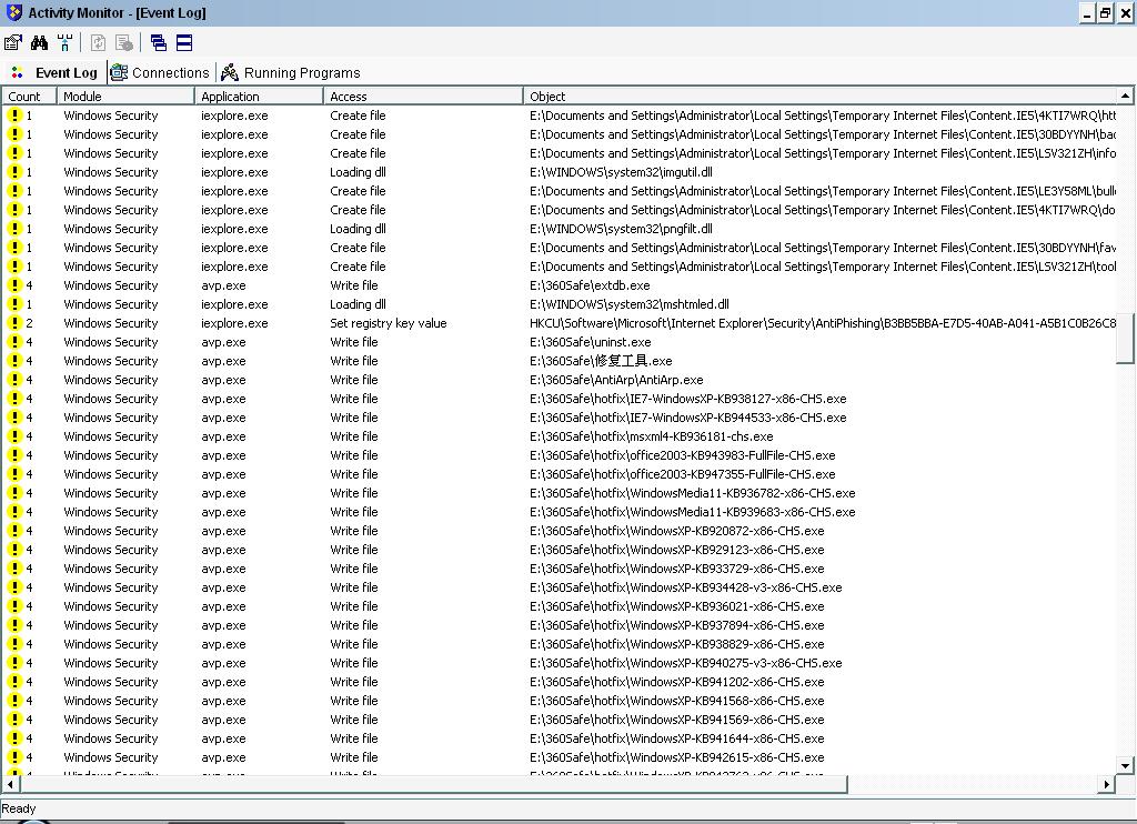 这幅图可能更直观些-----运行avp.exe木马样本后,卡巴报出来360等的文件被这个木马所写入而变质的一部分文件目录!