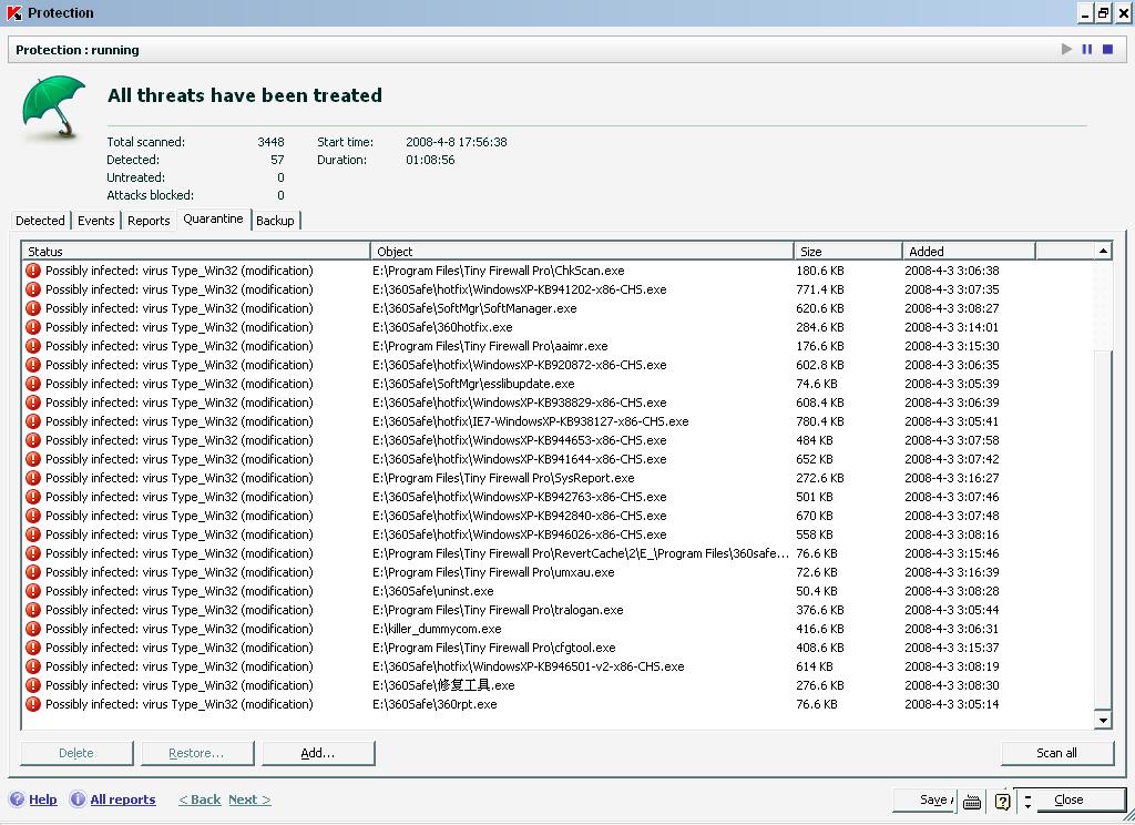 卡巴又把360当成病毒杀掉了,这是第几次了?第二次还是第三次了?每次都说跟卡巴官方联系上了,已经把误报解除,更新卡巴后就不会有问题了,可是,过不了多久,又会出现误报,到底是卡巴的问题,还是360的问题呢!?老是这样误杀又解除的,谁受得了呀!