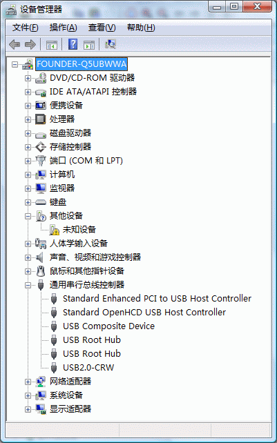 我的系统是Vista家庭高级版。昨天安装了系统更新,造成了没有鼠标的现象。不是鼠标不能动,而是屏幕上根本就没有鼠标。后来咨询了电脑厂商,他让我先换成PS接口的鼠标,然后到设备管理器中,把通用串行总线控制器中最后几个USB-ROOT之类的全部卸载,然后重新点击检测硬件改动。