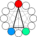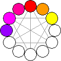 组色是色环上距离相等的任意三种颜色。当组色被用作一个色彩主 题时,会对浏览者造成紧张的情绪。因为三种颜色形成对比。上面所讲 的基色和次色组可以被称作两组组色。