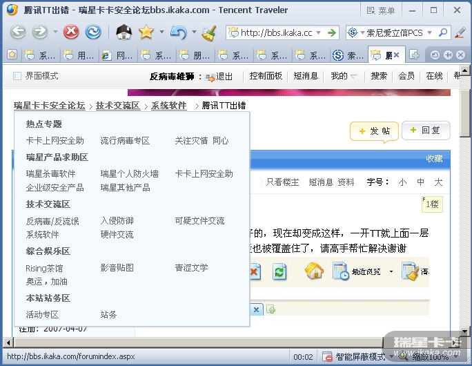 我的腾讯TT早上还好好的,现在却变成这样,一开TT就上面一层没有了,还有我工具栏也被覆盖住了,请高手帮忙解决谢谢