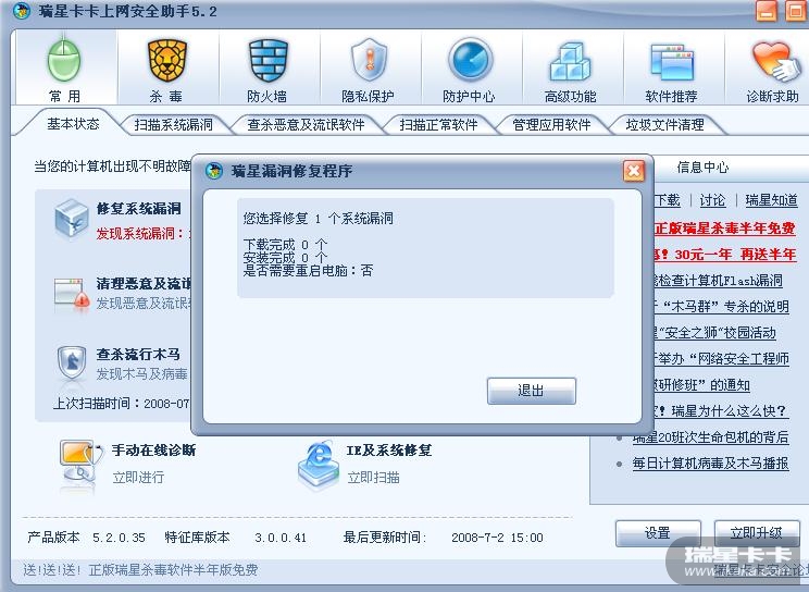 我也有的呀!那个漏洞是当前的操作系统 为 Windows XP 没有安装微软最新的Service Pack 补丁包 Service Pack 3系统漏洞补丁,容量是358MB,是一个相当大的系统漏洞补丁,并不是一时半会能下载好的,必需采用手动下载才行,我下载这个漏洞补丁需要4个小时左右才下载好它,后来装上它并重启电脑马上弹出错误提示,无法安装这个Service Pack 补丁包 Service Pack 3系统漏洞补丁,所以我一直放着。