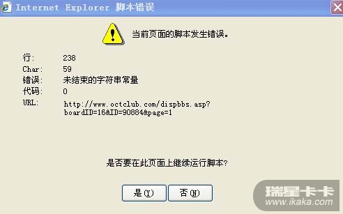 基本原因就是你的浏览器不支持某些网站上的脚本程序,其实这个错误无关紧要不会影响你的正常浏览,如果你觉得碍眼可以这么做:可以在浏览器中选择“工具—Internet选项—高级”,然后进入到浏览标签,并选中“禁止脚本调试”复选框,以后你就不会再收到这些警告了。