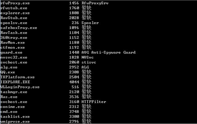 请问在“命令提示符”中输入tasklist /svc>abc.txt 后显示的进程后面提示的服务信息是“暂缺”是什么意思?是否说明这些进程有问题?改怎么解决?