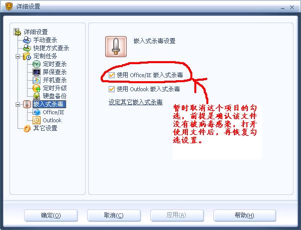 1、如果杀软用的是瑞星,请关闭瑞星的嵌入式杀毒,如下图:
