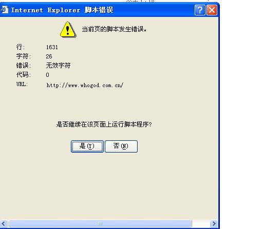 如果访问其它网站是弹出脚本错误,提示上的URL和访问的网站不一样,并且差得很远,可能是网站跳转了,跳转的网页存在问题。如果是跳转网站,有可能是本机有病毒,或者局域网有arp攻击。