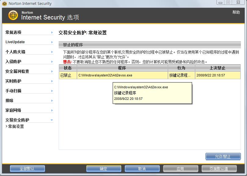 可是Norton把它禁止了,不知道为什么,见下图,说是按键记录程序。