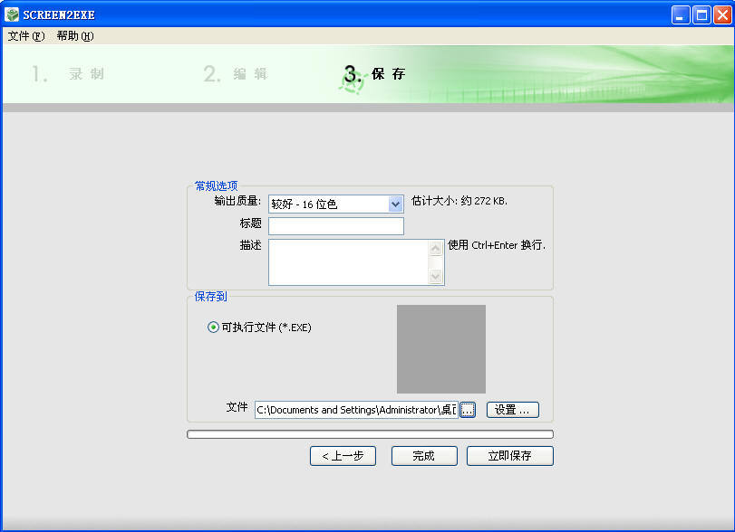 附件: SCreen2exe(官方英文版).rar (2008-9-26 10:01:23, 806.22 K)该附件被下载次数 158
