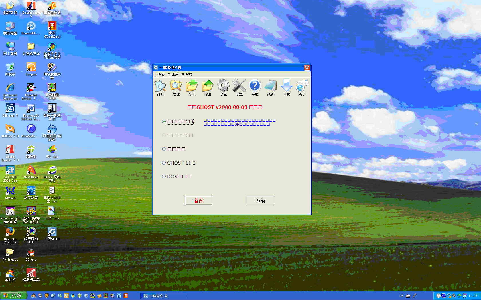 我今天发现我的一键GHOST的界面变成了如图所示的情况,汉字变成了框框,一个扫描仪的软件界面也是这样,帮帮我,谢谢!