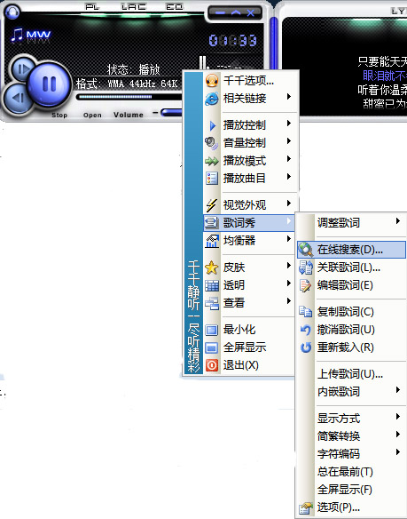 有事听歌的时候没有歌词显示,我从网上找着有,怎么弄到千千静听上啊