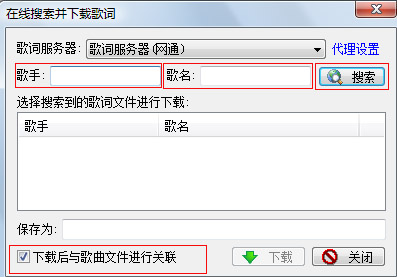 按图填上歌手名,歌曲名,点搜索一般都能找到歌词,找不到歌词的原因可能是你下的文件里的有些信息不对,不如多了一个网址等等,如果这样找不到可按楼上的做法在第一个图中选“关联歌词”,将你下载的歌词文件与歌曲关联即可。