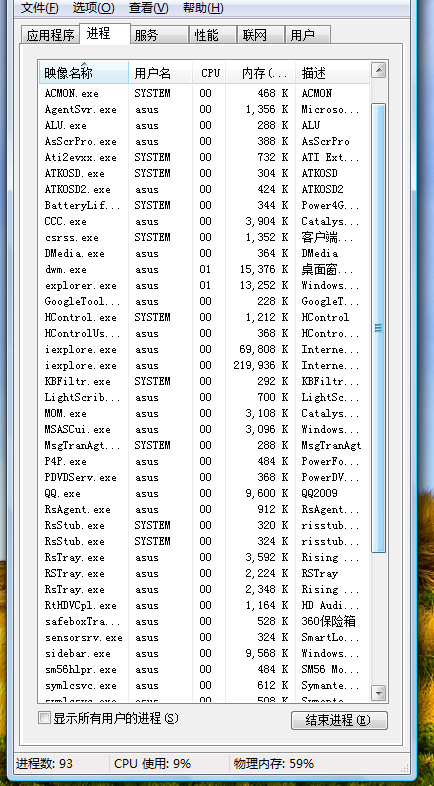 是不是太高了啊,只上了一个QQ和一个网页游戏。而且以前的系统进程数为88现在变成了95了,都不知道增加了那些。请高手指点。