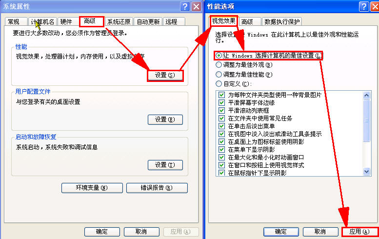1.右击“我的电脑”,依次单击“属性/高级/性能设置”在“视觉效果”页中将“在桌面上为图标标签使用阴影”选中,单击确定即可。