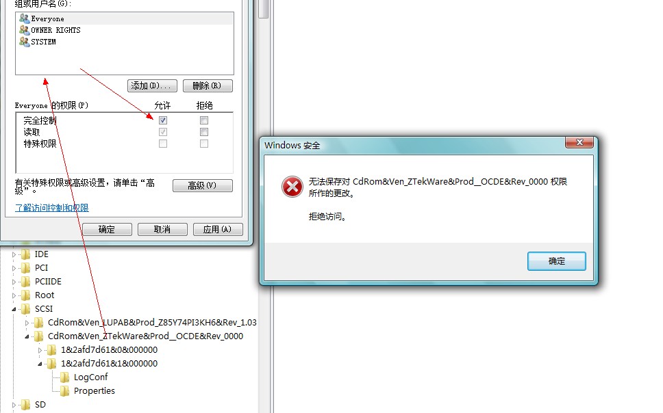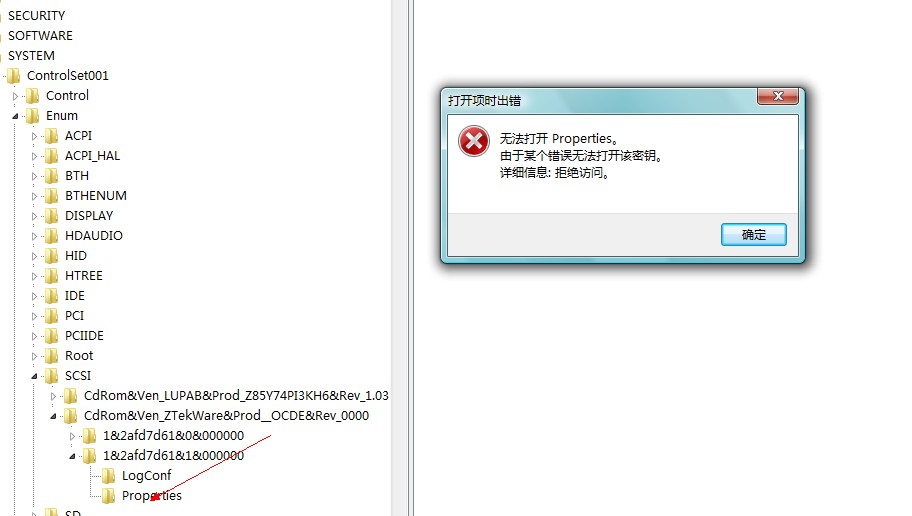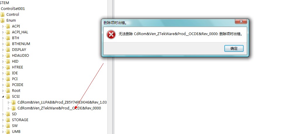 我怀疑是前几天的虚拟光驱软件的注册表残余没删掉,我尝试,删除,但失败(当前帐户拥有管理员权限,UAC已经关闭)