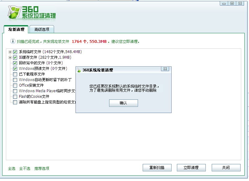 导致360系统垃圾清理使用不正常 如图